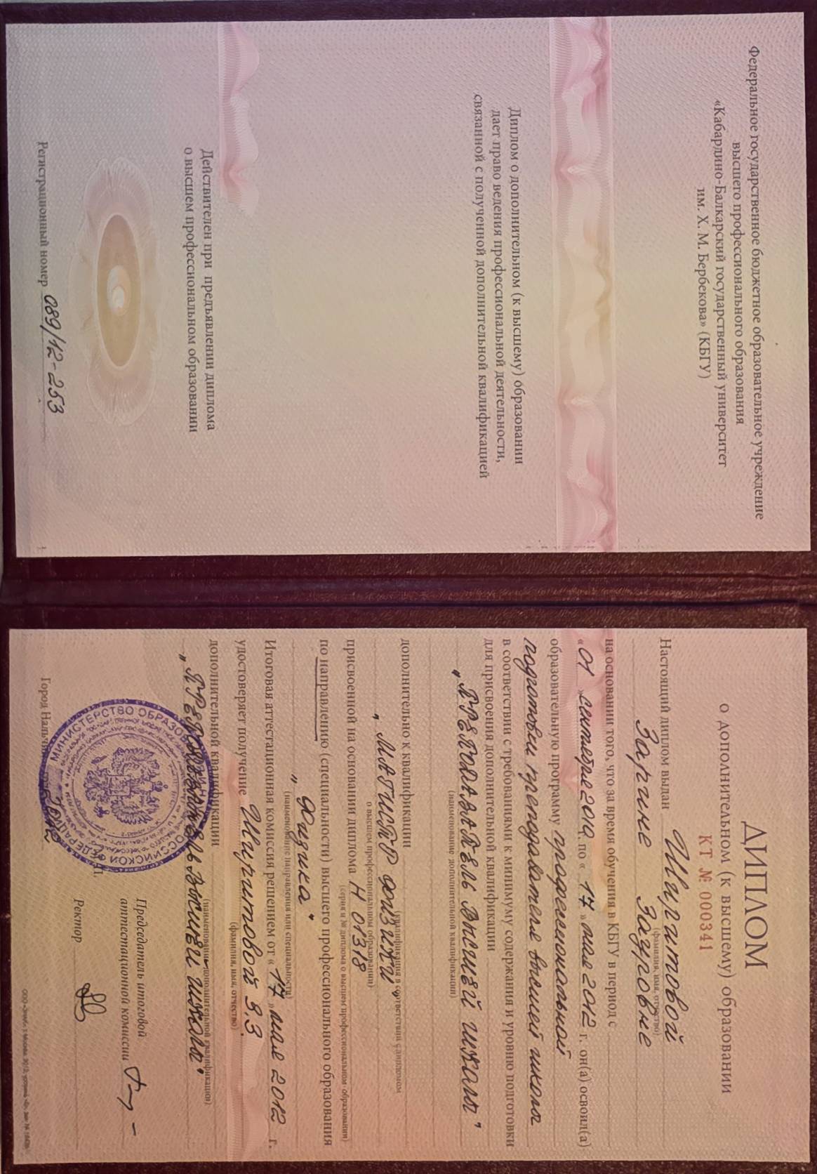 - ФГБОУВПО "Кабардино-Балкарский государственный университет им. Х. М. Бербекова", 2012 г. (смотреть)