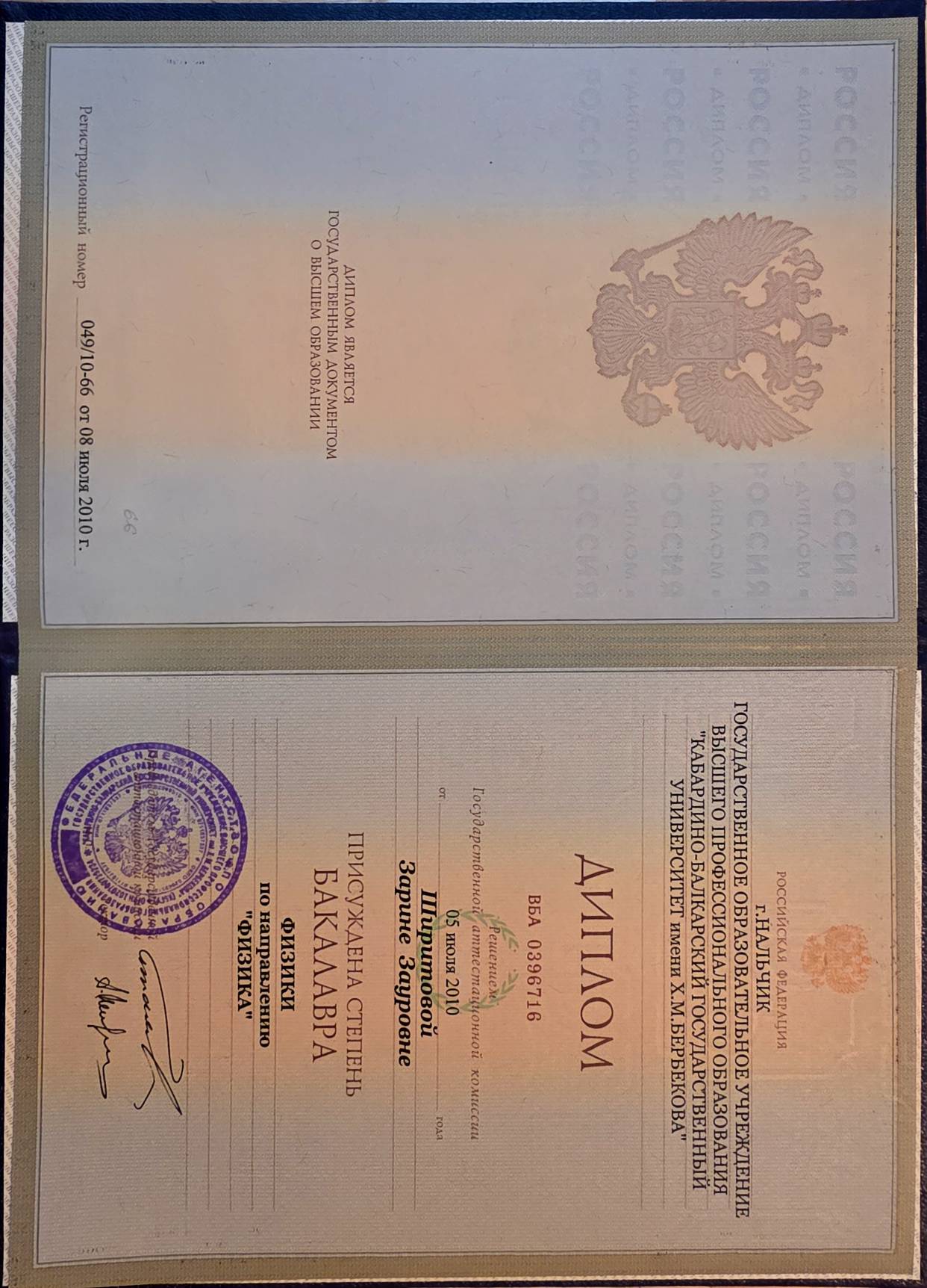 - ГОУВПО "Кабардино-Балкарский государственный университет им. Х. М. Бербекова", 2010 г. (смотреть)