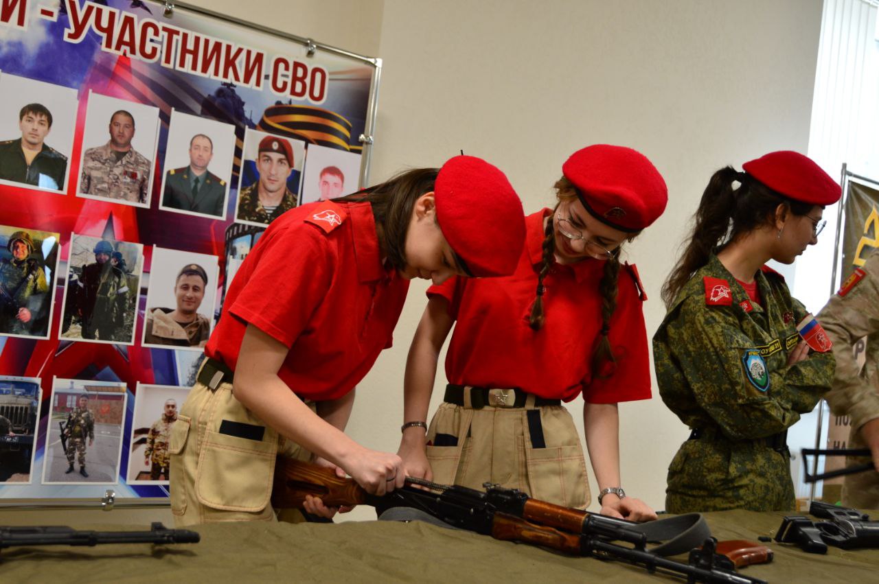 21 февраля в Центре детского творчества г.о. Баксан прошла встреча юнармейцев образовательных учреждений округа с представителями военного комиссариата г.о. Баксан, Баксанского и Зольского районов и участниками специальной военной операции. В мероприятии приняли участие: Шибзухов Анзор Мухамедович - старший помощник начальника отделения (подготовки и призыва граждан на военную службу) военного комиссариата; Дышеков Азамат Асланович - инструктор пункта отбора на военную службу по контракту г. Нальчик, участник СВО; Меньщиков Валерий Александрович - инструктор пункта отбора на военную службу по контракту г.Нальчик, участник СВО; Зеушева Алена Альбертовна - директор ЦДТ г.о. Баксан, начальник Штаба местного отделения Юнармии.