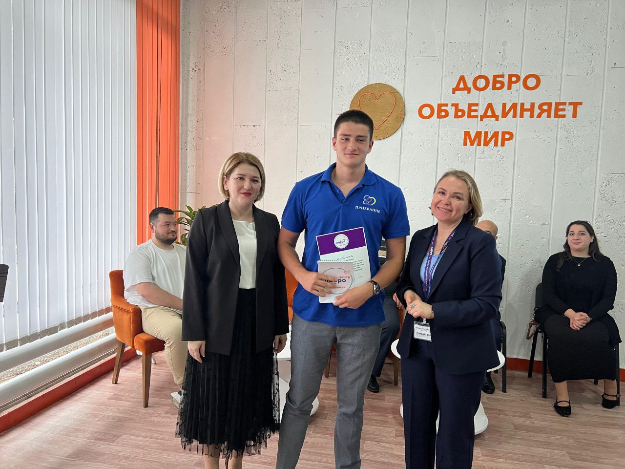 С руководителем Добро.Центра Аленой Зеушевой и председателем комитета по физической культуре, спорту и молодежной политике г.о.Баксан Асланом Каскуловым гости обсудили возможности для развития и поддержки социальных инициатив добровольцев, реализацию совместных проектов, пообщались с волонтерами-активистами.