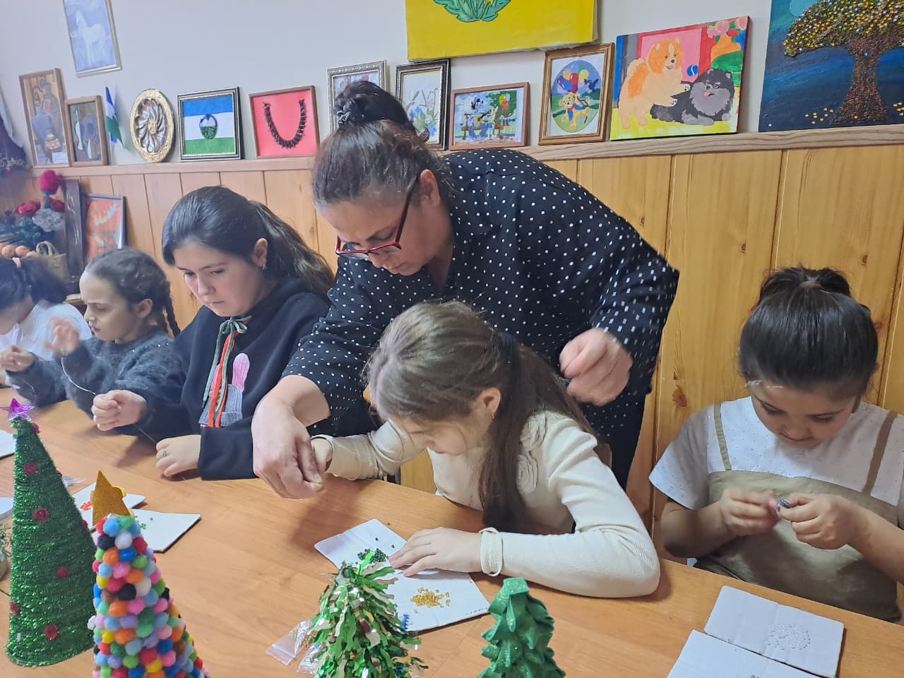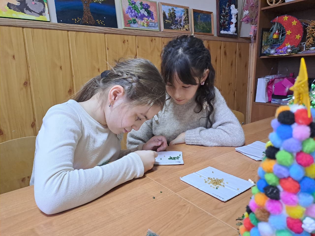 Особое внимание заслуживает мастер-класс по изготовлению новогодней ёлочки из бисера, который провела Нагоева Амалия, и в котором могли участвовать все желающие.
